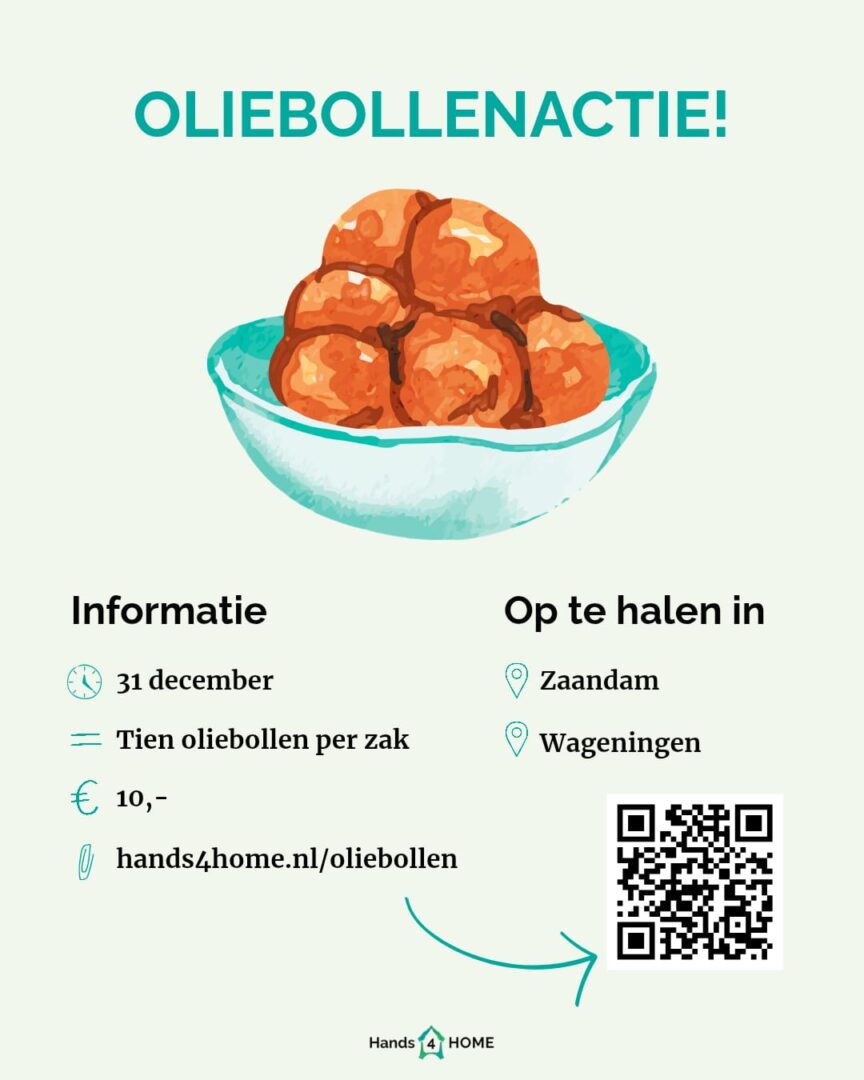 Op oudejaarsdag bak ik oliebollen voor Stichting Hands4Home, deze verse oliebollen zijn overdag op te halen in Wageningen!